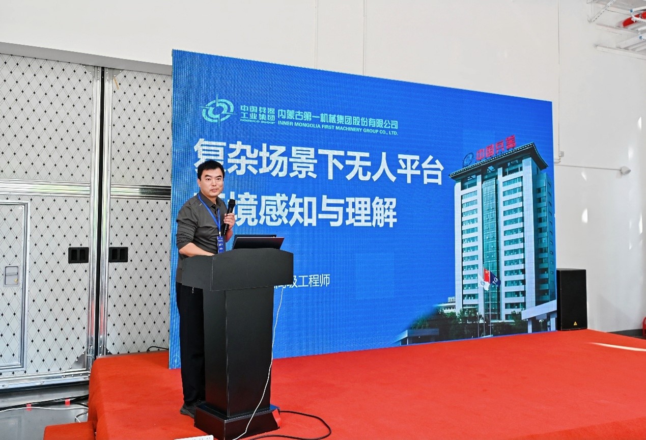 中国兵器内蒙古第一机械集团股份有限公司技术副总监徐震宇工程师作题为“复杂场景下无人车辆环境感知与理解”的报告,从声光电液热力磁多维度开展车辆“感知-决策-执行”智能化研究与实践应用,达到地面车辆智能化赋能目的。