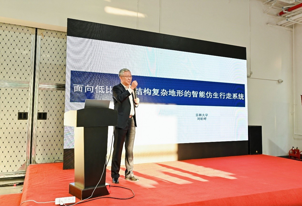 吉林大学刘昕晖教授作题为“面向低比压、低附着系数非结构地形的运输作业车辆”的报告,介绍了尺蠖式行走的新型行走方式,对于滩涂、沼泽、沙漠场景的特殊运输、作业需求提供技术参考与装备新构型。