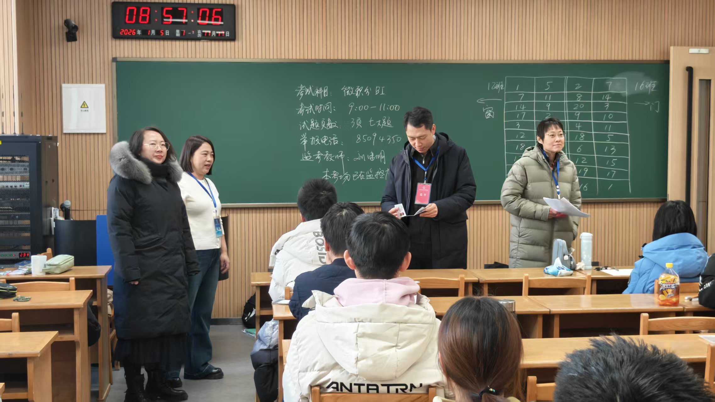 2026年1月6日上午,机械与航空航天工程学院院长吴文征、党委副书记兼副院长柴媛、副院长朱航等领导和专家深入期末考试各考场,开展巡考检查工作,全面巡查考场秩序,从严抓好考风考纪。