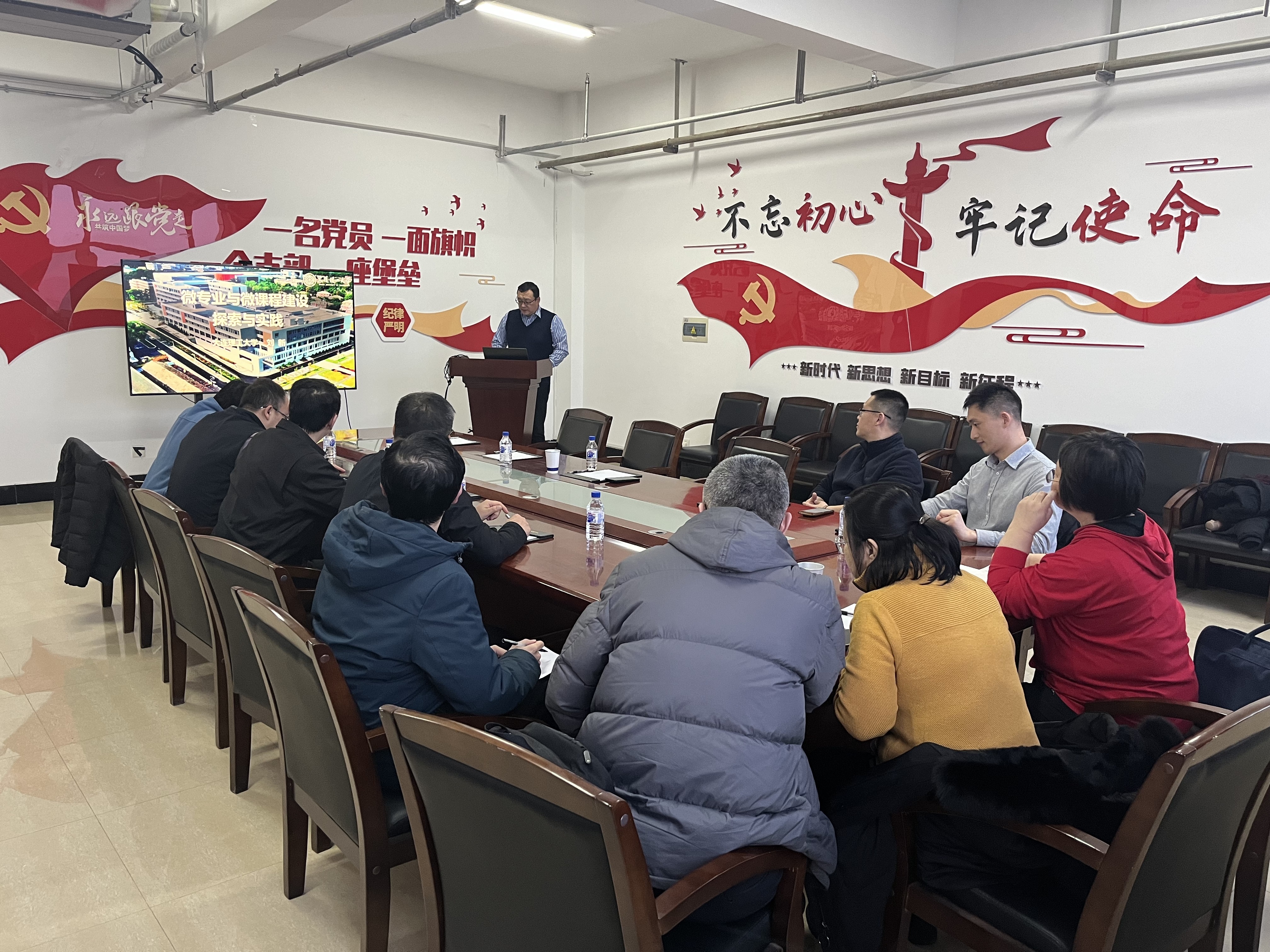 双方在会议室开展了交流活动。会议伊始,邀请了大连理工大学刘新主任作题为“微专业与微课程建设探索与实践”的学术报告。报告中,刘新主任重点分享了学校在微专业-微课程建设方面的探索成果,详细解读了构建的"专业认知、项目式系统学习、场景综合应用"三阶训练微课程体系,强调该体系以培养学生创新思维和实际动手能力为核心,通过融入实际案例分析与项目实践环节,帮助学生完整掌握从创意产生、创新设计到实物制作的全流程,凸显理论与实践深度融合的教学理念,为工程训练领域的人才培养提供了新路径。