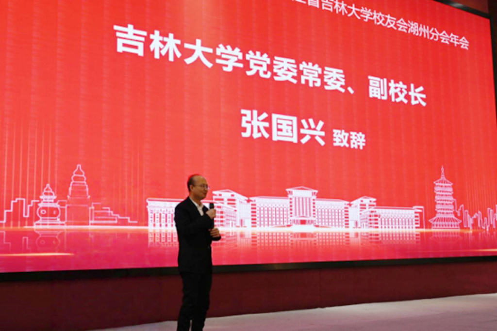 吉林大学党委常委、副校长张国兴在发言中代表学校向全体与会人员致以诚挚的新年祝福,衷心感谢湖州市政府及社会各界对学校的关心与支持,他高度赞扬了在湖校友取得的优异成绩以及为母校赢得的良好声誉。张国兴指出,2026年是母校建校80周年,诚挚邀请海内外校友重返母校共庆盛典、共话发展;希望广大校友始终秉持吉大精神,在各自领域勇攀高峰,持续关注支持母校建设发展,携手共创母校与校友事业的辉煌未来。