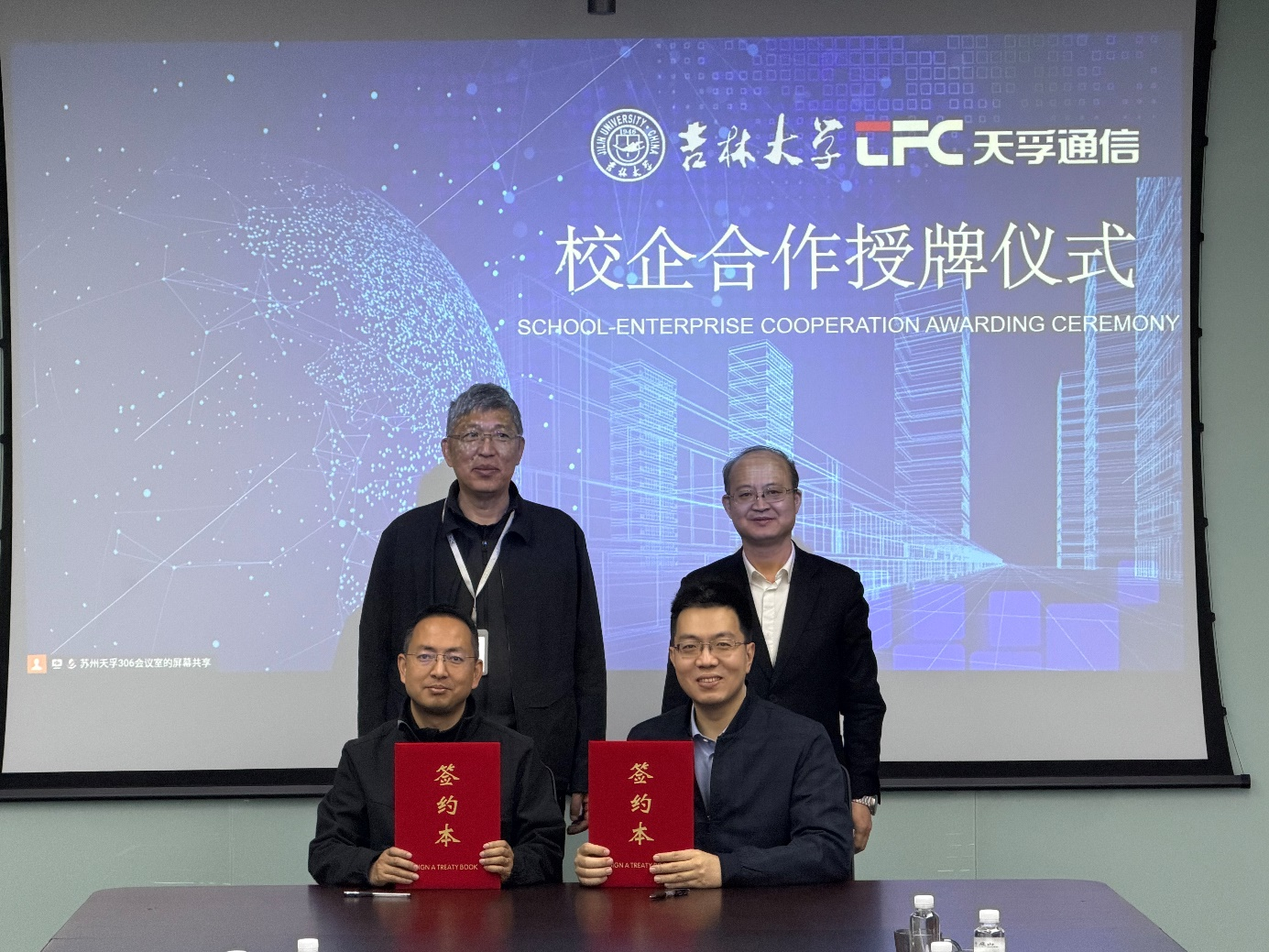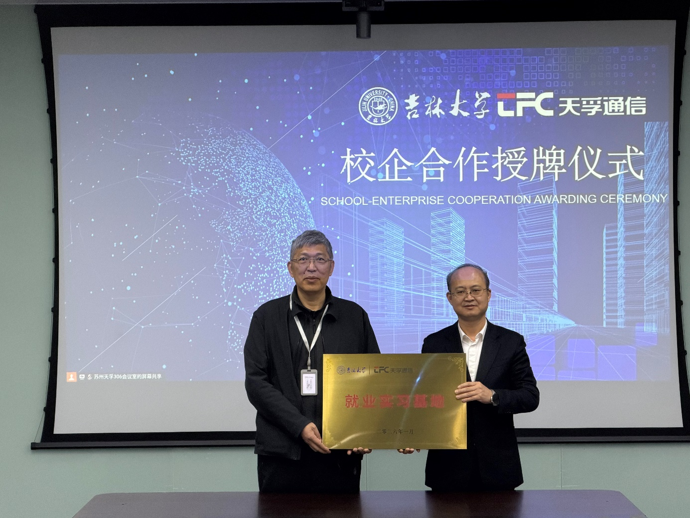 活动现场,校企合作签约与授牌仪式顺利举行。吉林大学学生就业创业指导与服务中心副主任潘振与天孚通信运营副总裁、董事会秘书陈凯荣共同签署《天孚通信与吉林大学共建就业实习基地合作协议》。张国兴代表学校向邹支农校友授予“就业实习基地”牌匾,标志着双方协同育人合作正式落地。根据协议,双方将围绕实习实训、职业规划指导、毕业生就业等方面开展深度合作,打通校园人才培养与企业需求对接的“最后一公里”。