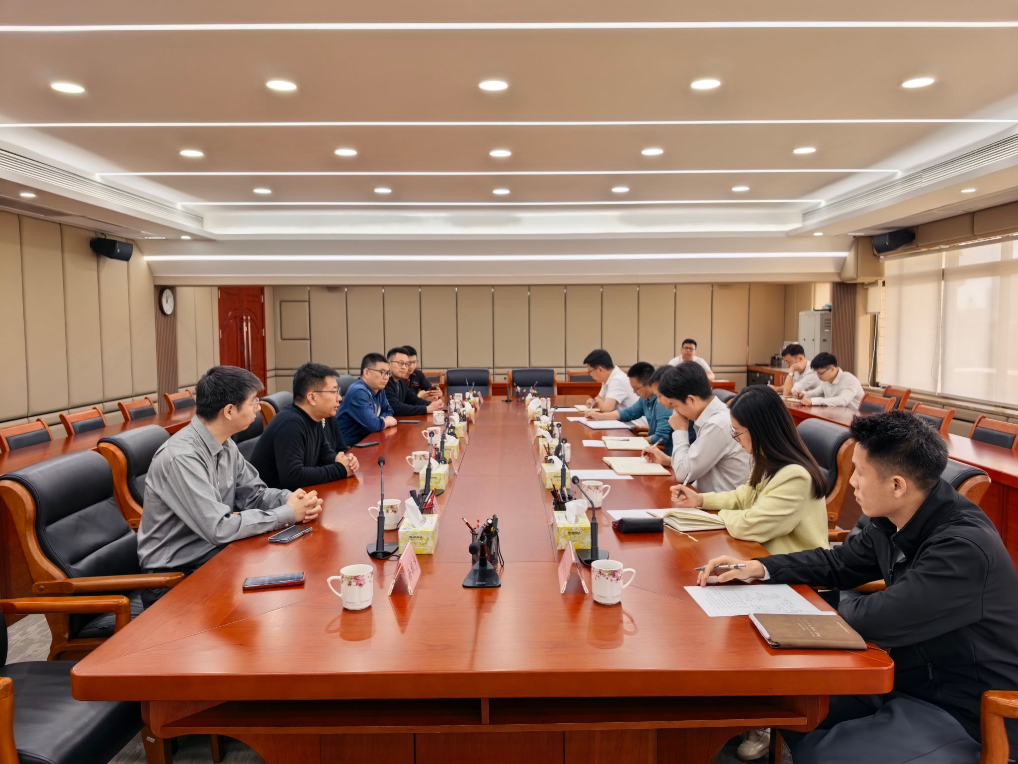 最后,调研组赴汉宇集团股份有限公司参观交流,与创始人石华山共商合作事宜。双方聚焦粤港澳大湾区产学研中心建设,围绕新能源汽车及零部件、人形机器人等领域展开深入探讨,就项目合作、技术孵化、产业对接等达成多项共识。此次交流为未来双方开展深度合作、推动产学研成果落地奠定了良好基础。