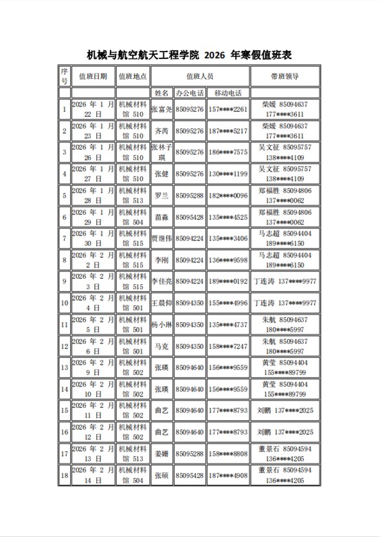 学院2026年寒假值班表
