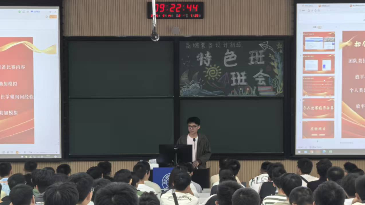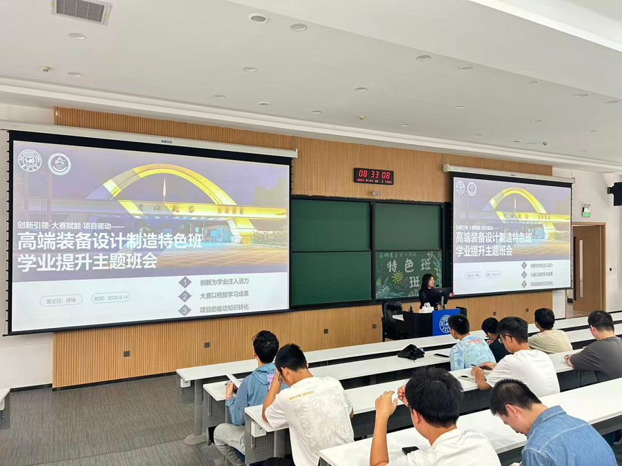为帮助同学们明确发展目标,科学规划大学发展方向,在学院学生工作办公室的组织协调下,班主任呼咏教授、辅导员张健老师、齐芮老师统筹推进、共同策划,我院高端装备智能设计制造特色班于9月14日上午8:30在逸夫楼A区成功召开“创新引领·大赛赋能·项目驱动”主题班会,特色班全体成员参加了本次班会。