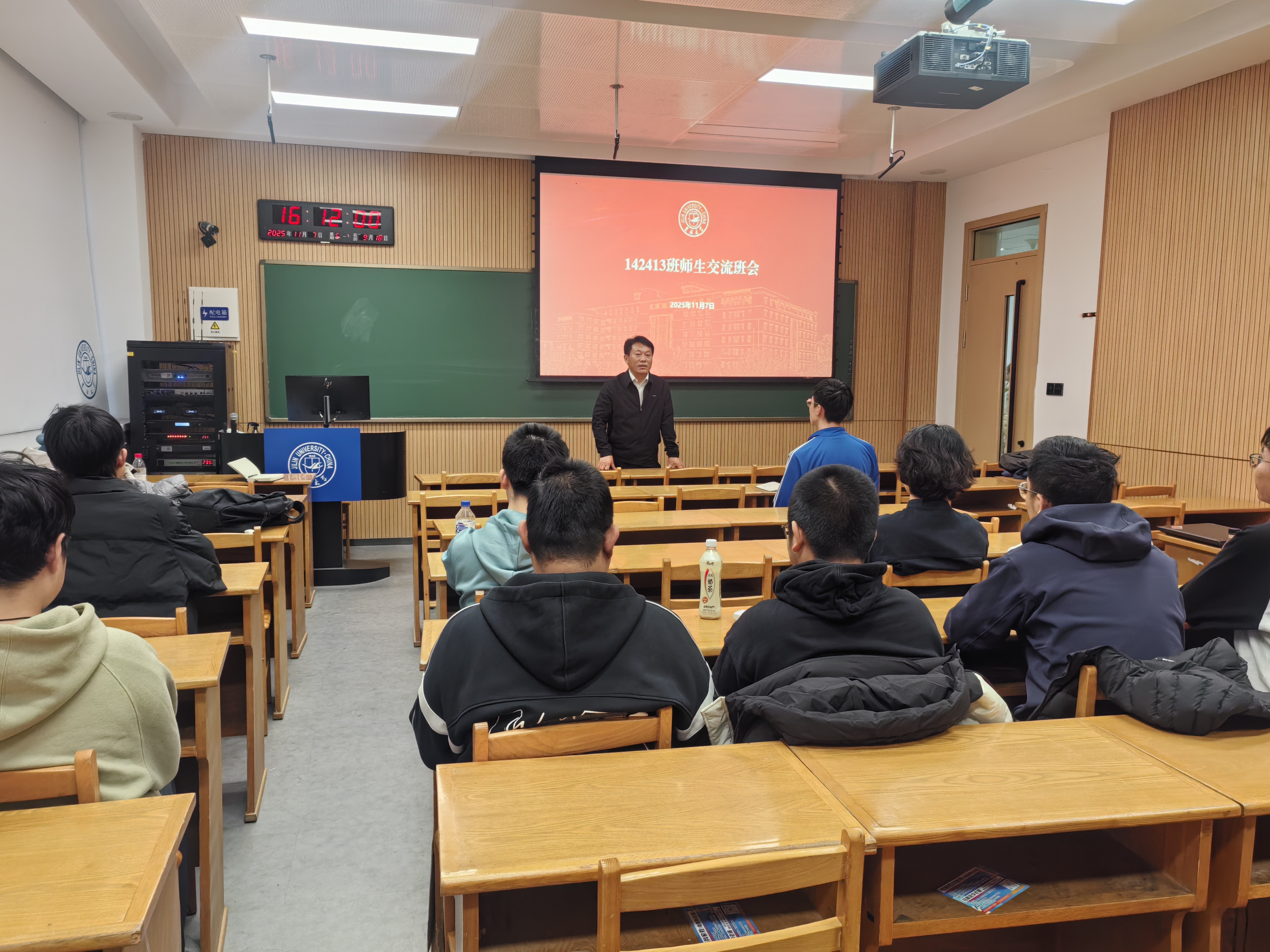 2025年11月8日,机械与航空航天工程学院2024级机械工程饶斌班在逸夫楼组织班主任见面会。班主任郑福胜老师、班主任助理赵雨老师应邀出席,与同学们亲切交谈,现场氛围轻松融洽。