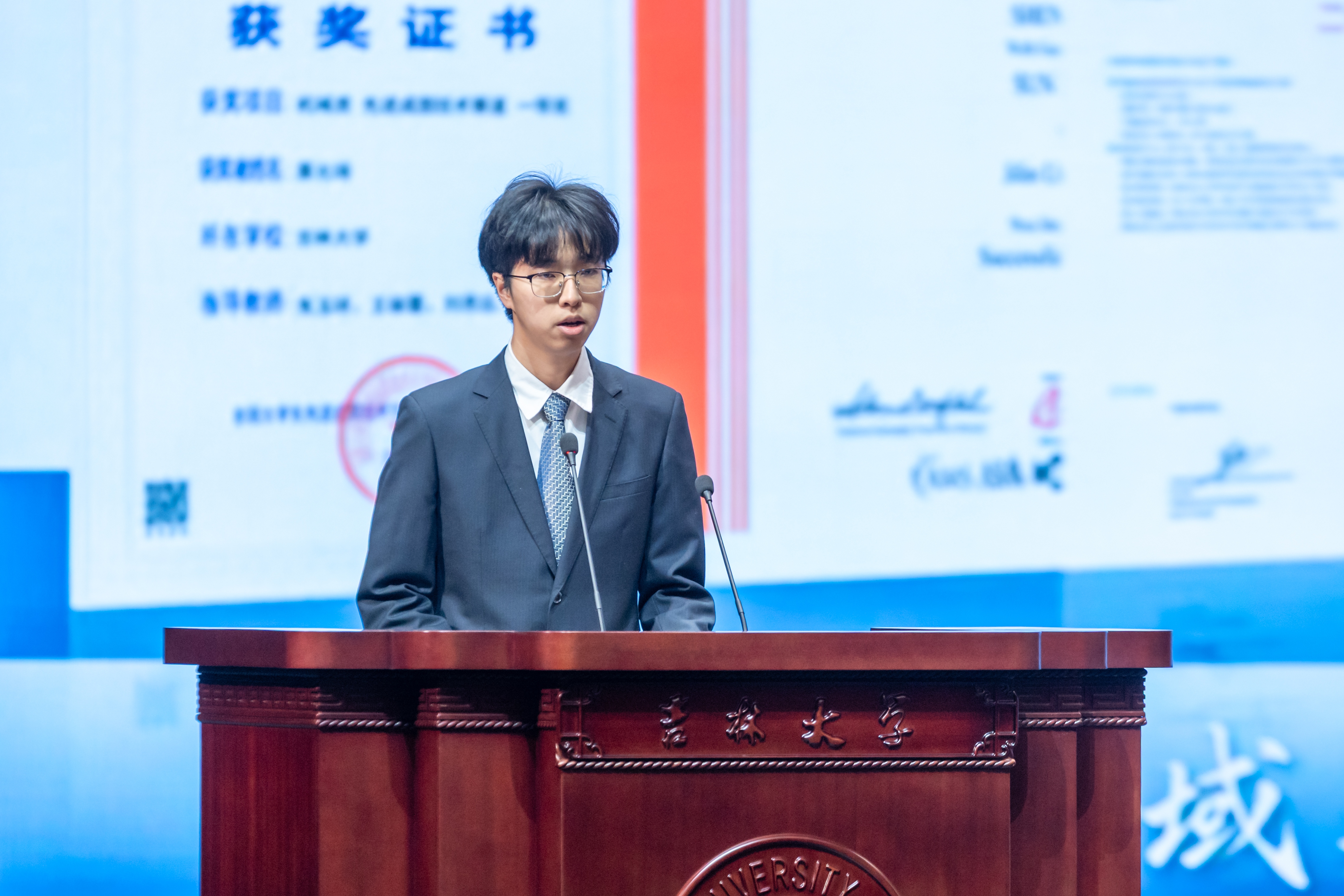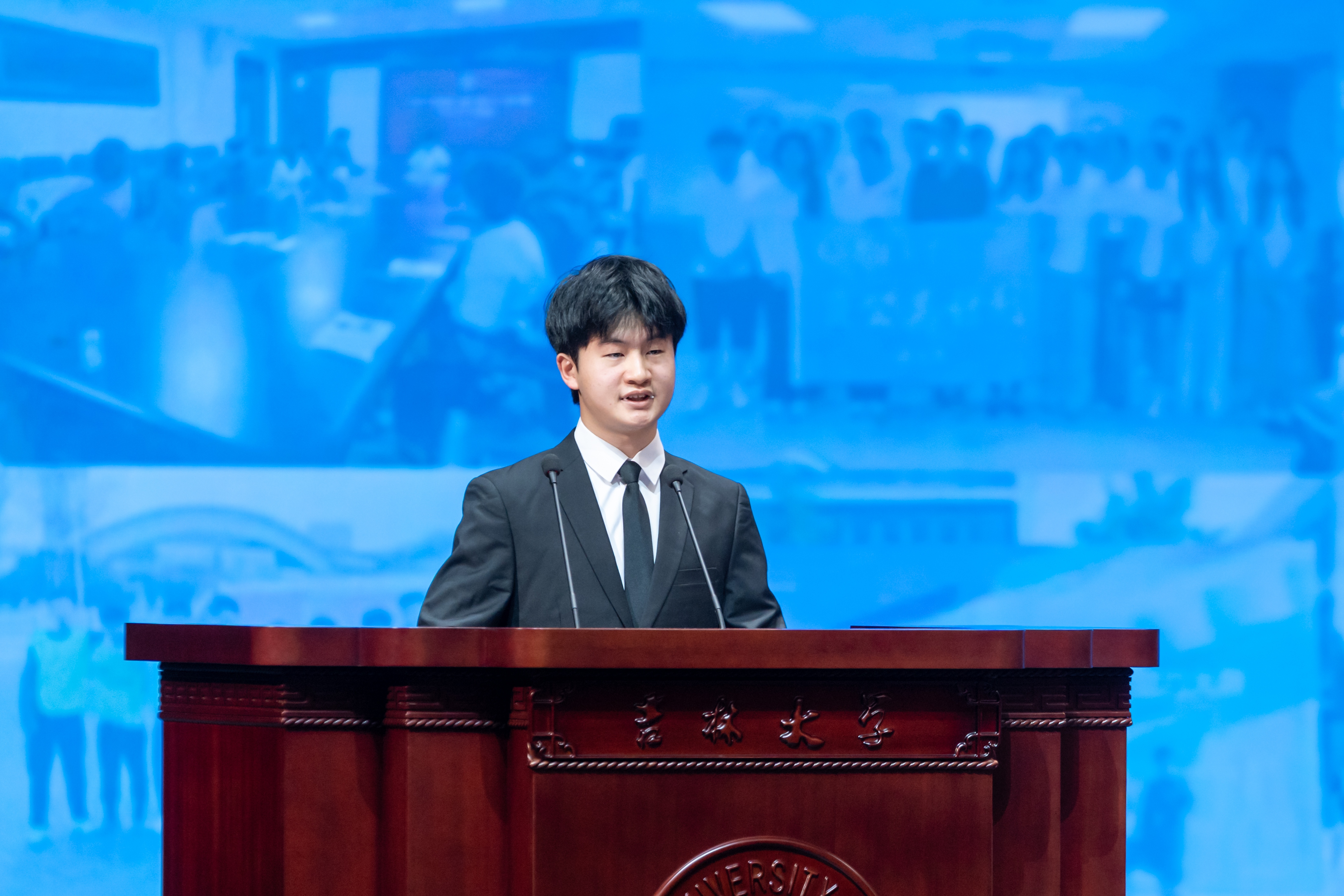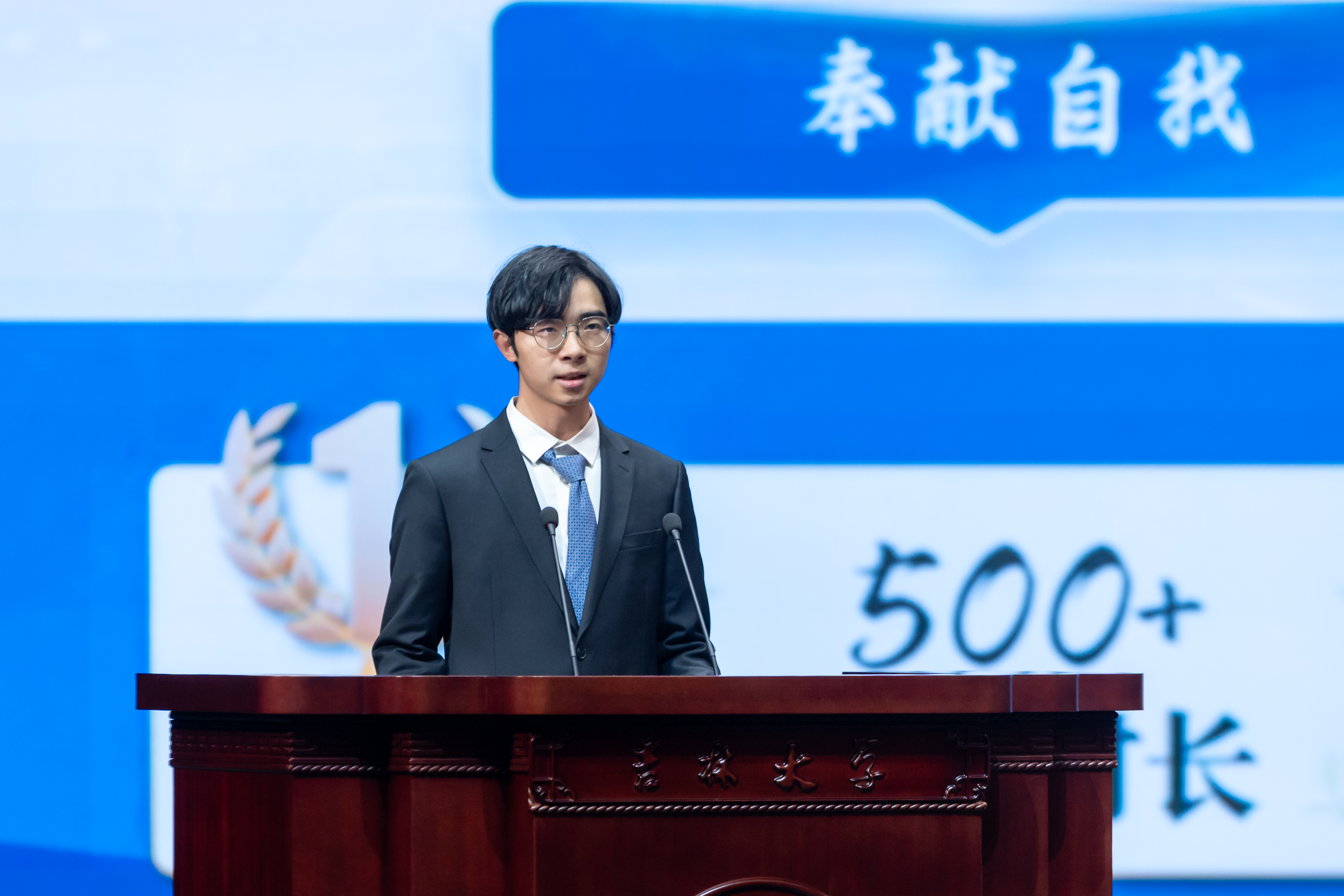 “聚力”优秀学生干部获奖学生代表徐盟、大学生创新菁英奖获奖学生代表栗允琦分别讲述了组织服务和科技创新中锤炼本领、奉献成长的故事,彰显了学生骨干的先锋作用和工科学子深耕科研的创新精神。