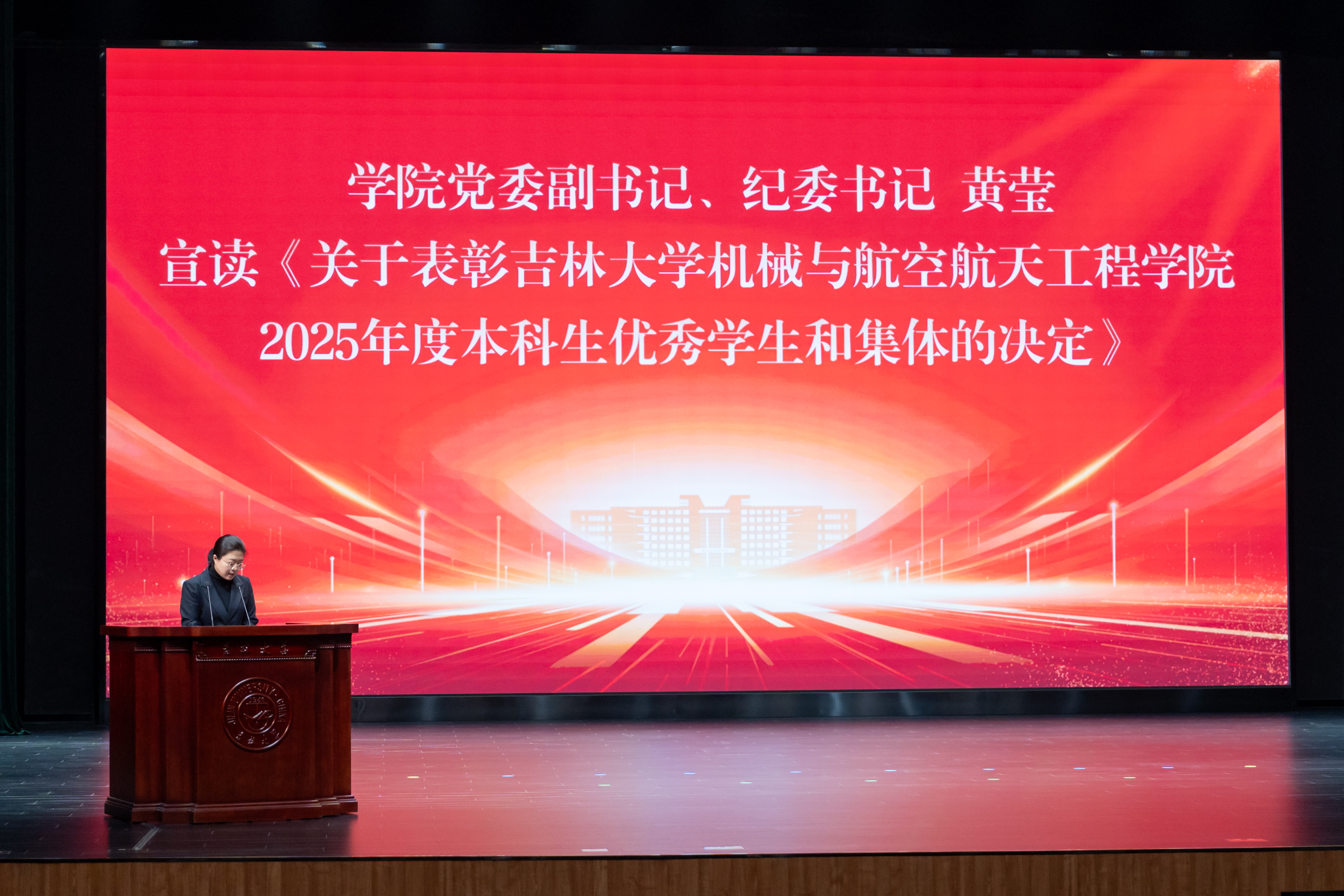 会上,学院党委副书记、纪委书记黄莹宣读了《关于表彰吉林大学机械与航空航天工程学院2025年度本科生优秀学生和集体的决定》。