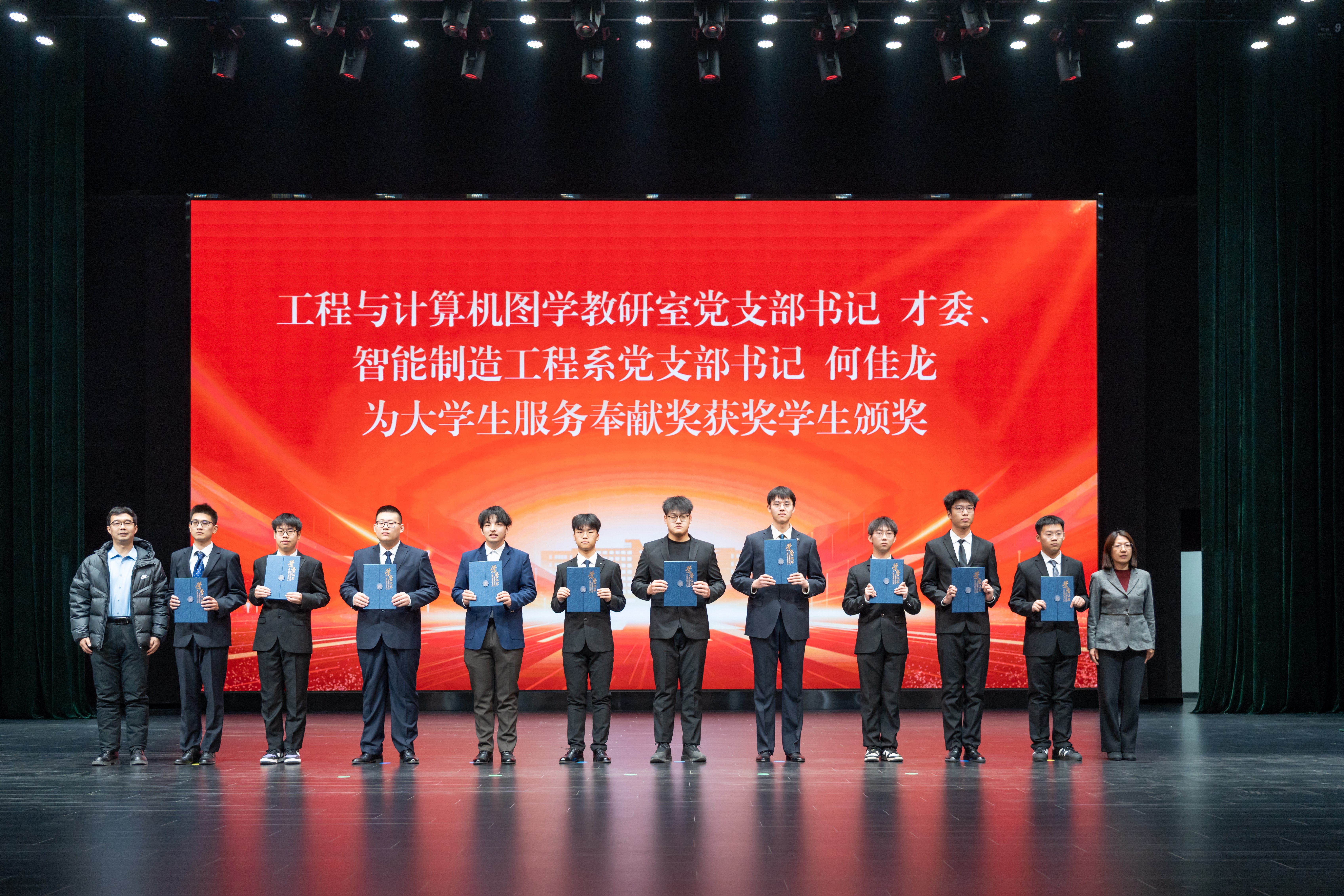 大会对2025年度本科生优秀学生和集体进行了表彰。学院院长吴文征为“领航者”十佳大学生获奖学生颁奖。学院党委副书记丁连涛为“砺刃”大学生自强之星获奖学生颁奖。