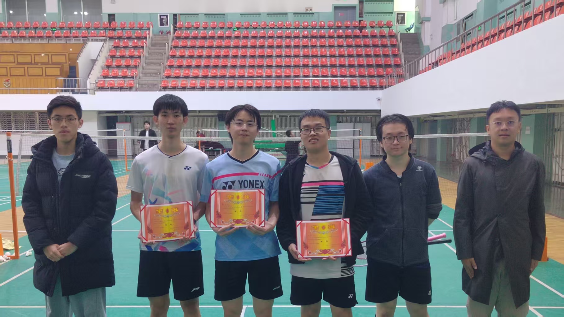 比赛设置两个阶段、共七轮对决并采用小组单循环赛制,增强同学们的参与感。赛场上,选手们朝气蓬勃、身手敏捷,灵活运用吊球、扣杀、网前封挡等多种战术,展现出扎实的技术功底和良好的体育素养,引得现场掌声不断。经过多轮激烈角逐,黄永浩同学荣获本次比赛冠军,洪龙杰、张智博、张绍铭分别获第二至四名。赛后举行了简短的颁奖仪式,为获奖同学颁发证书与奖品,全体参赛选手合影留念。