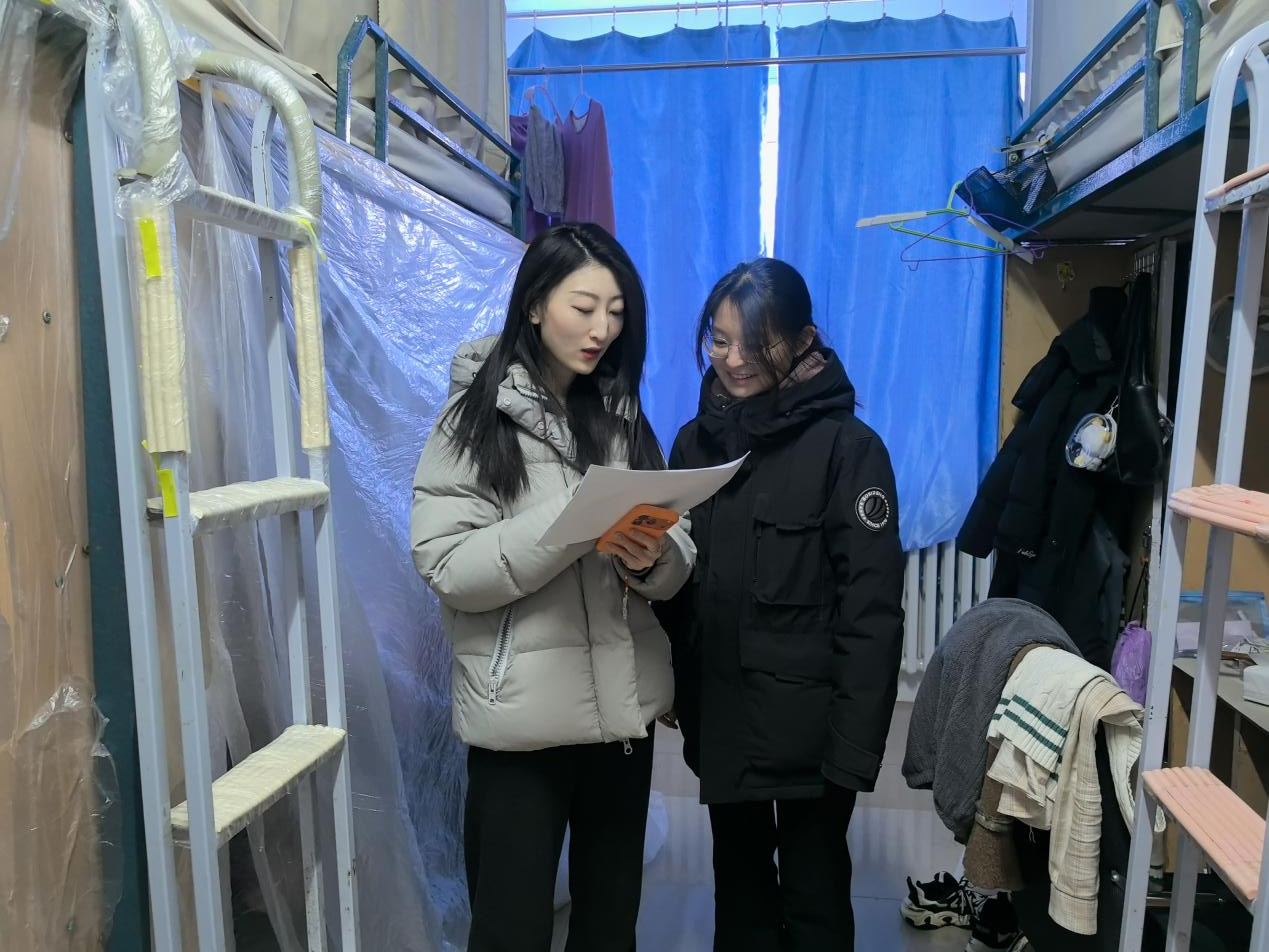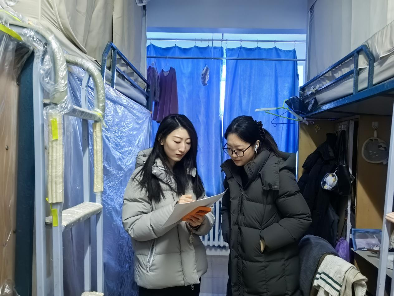 为加强寒假期间研究生公寓安全管理,保障学生安全、有序离校,1月20日下午,学院组织开展研究生寝室安全卫生检查工作。研究生辅导员张瑛、曲艺深入各公寓楼,走访检查研究生寝室并开展安全教育。
