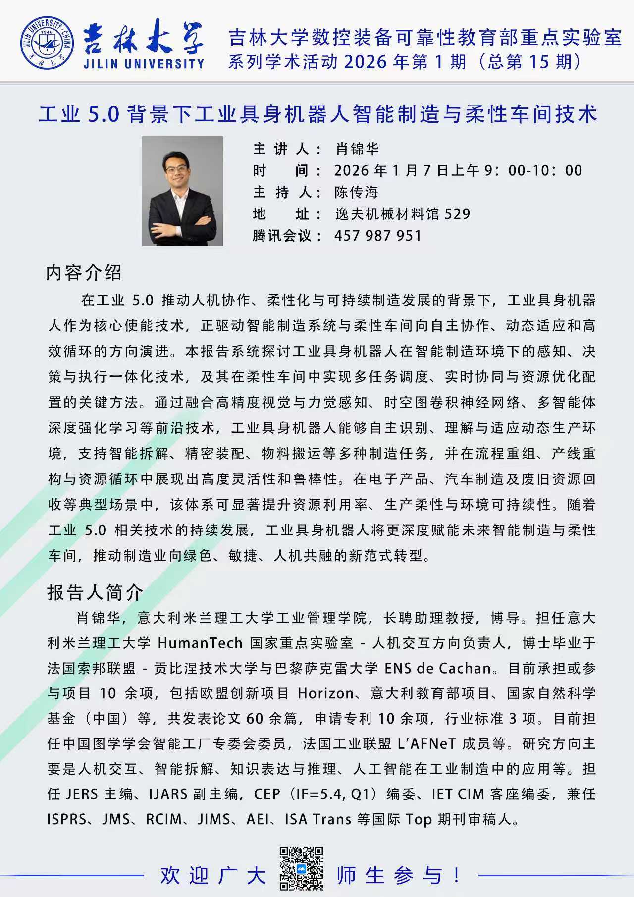 吉林大学数控装备可靠性教育部重点实验室系列学术活动2026年第1期(总第15期)
